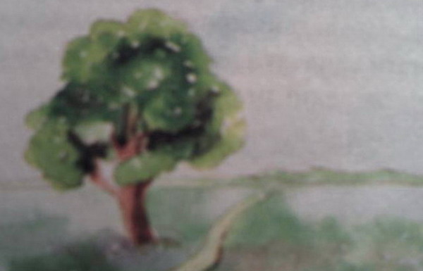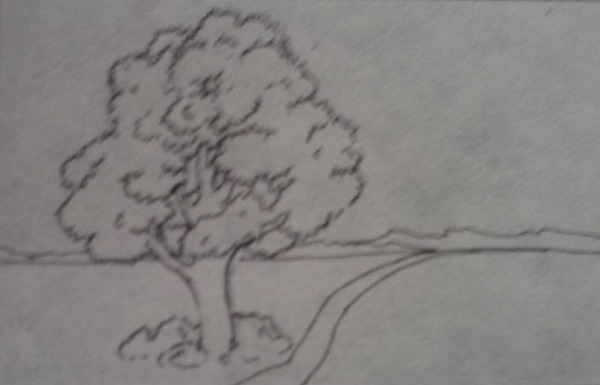 Відтворення лінійної, колірної, повітряної перспективи в ескізній композиції за уявою «Дерево серед степу»